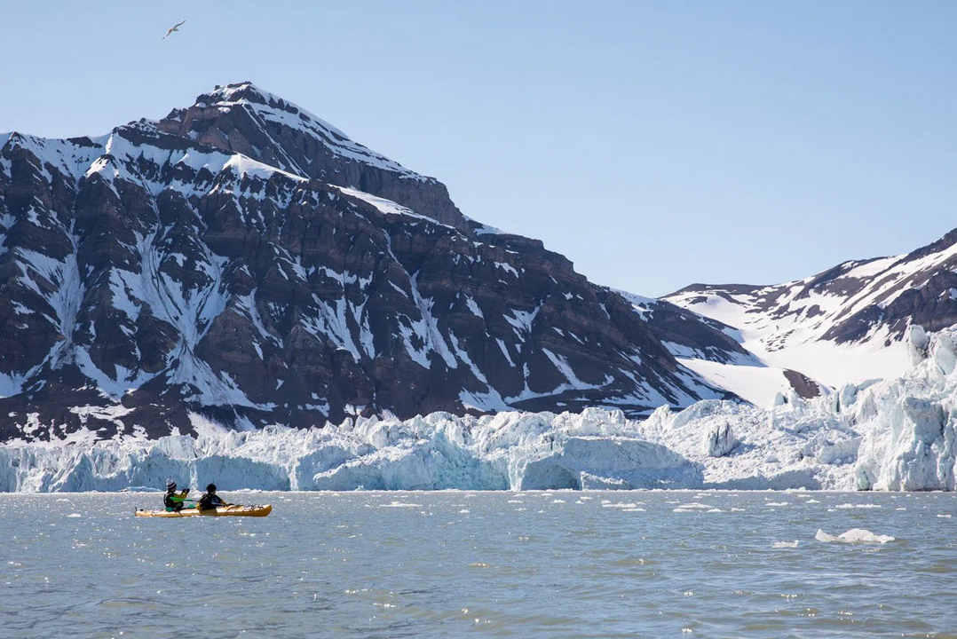 Traslado al puerto de Longyearbyen. Saldremos en una lancha semi abierta hasta el glaciar de Svea, donde nos esperan en la orilla seguras piraguas dobles de mar.